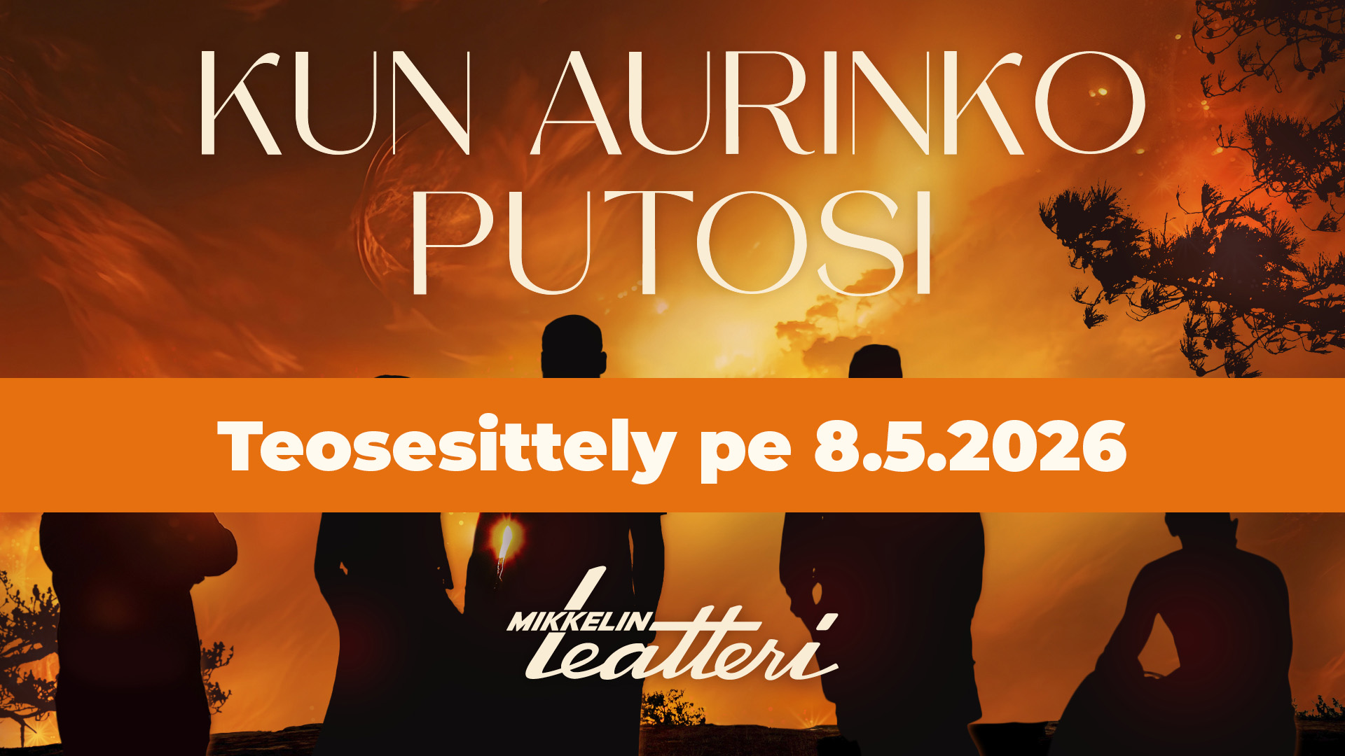 Tervetuloa seuraamaan syyskuussa ensi-iltansa saavan, Kun aurinko putosi -musiikkinäytelmän teosesittelyä perjantaina 8.5.2026 klo 17:30 alkaen!